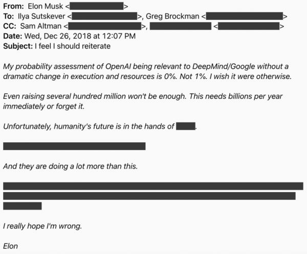当时,OpenAI也公布了一些电子邮件,声称这些邮件显示马斯克一直支持公司向盈利模式转变。