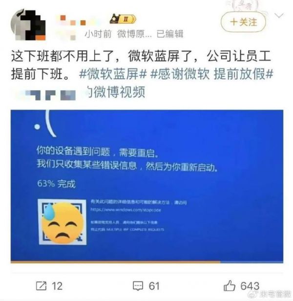 7月19日微软旗下Microsoft 365系列服务出现访问中断,大量用户电脑出现蓝屏,多个国家的航班停飞,医院、银行、酒店被迫停工,连股票交易所都受到波及。