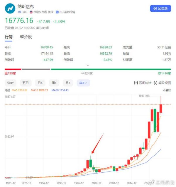 2000年美股出现了一次史上持续时间最长、涨幅最大的牛市。