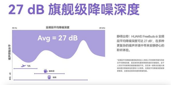 不同于以往其他TWS耳机产品宣传的“最大降噪深度”概念,华为FreeBuds 6i主打“全频段平均降噪深度”,实现了27dB的全频段降噪深度。这一创新举措打破了消费者对单一降噪指标的误解,让消费者明白,真正优质的降噪耳机不仅要在某个频率点上表现出色,更要在各种环境噪音下都能提供全面、稳定的降噪体验。
