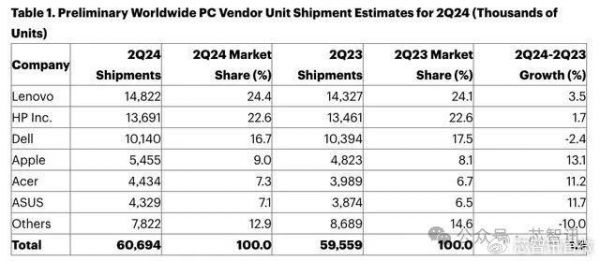 根据研究机构Gartner的数据显示,在今年二季度的PC市场,惠普的出货量为1369万台,同比增长1.7%,全球市场份额为22.6%。仍低于排名第一联想(24.4%)。