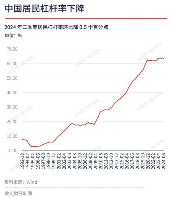 根据国家资产负债表研究中心公布的季度数据,今年二季度中国居民杠杆率下降了 0.5 个百分点、至 63.5%。按季统计的降幅为 2008 年金融危机以来最多。居民部门杠杆率是用居民部门债务除以名义 GDP。其中债务包括消费贷款和经营贷款。