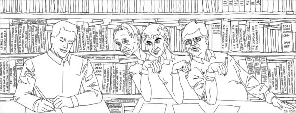 甲子光年:显然你指的是图灵奖的“深度学习三巨头”——Geoffrey Hinton、Yoshua Bengio和Yann LeCun。之前你和他们经常有争论,目前你对他们的看法有什么改变吗?(注:Schmidhuber强调,这三人都出生于欧洲,其中Hinton来自英国,Bengio和LeCun来自法国)
