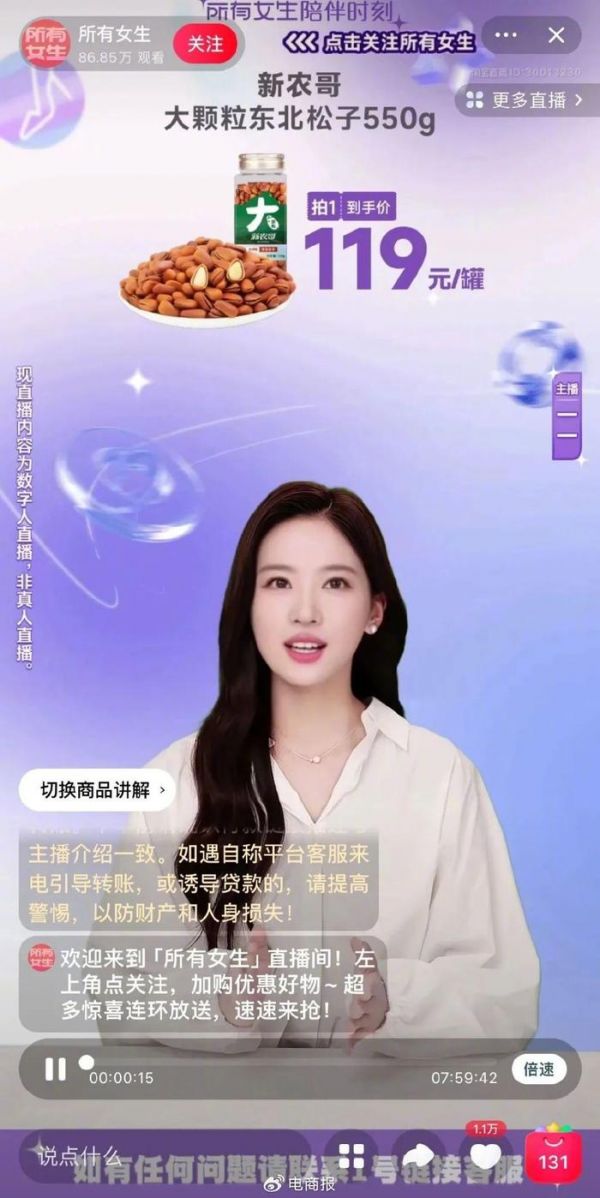 在主播层面,美腕成立了由12人组成的助播团,今年618期间,还引入了AI数字人技术到“所有女生”直播间中。
