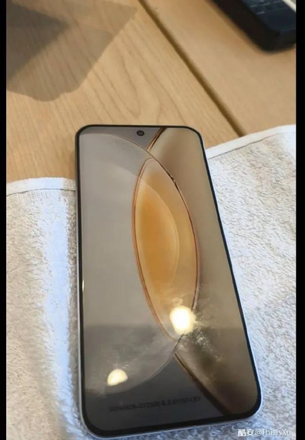 结合图片可以看出,这款新机的背部采用大圆形DECO,闪光灯在圆形相机右上角位置,中框为金属直角边设计,正面配备等深四曲屏,采用中置打孔的设计。