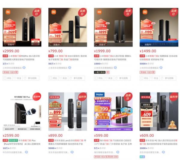 (图片来源:京东)对此,小雷不太建议大家选择太便宜或杂牌的智能门锁,推出这些产品的厂商可能把更多成本放在智能功能上,核心部分反而有些缩水。