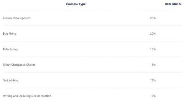 Cosine 在其博客文章中表示,他们花了将近一年的时间来整理数据集,在最近的训练运行中,Genie 接受了数十亿个 token 数据的训练,选择的数据包含了用户目前最关心的编程语言。以下是训练 Genie 的过程中不同编程语言数据所占的比例: