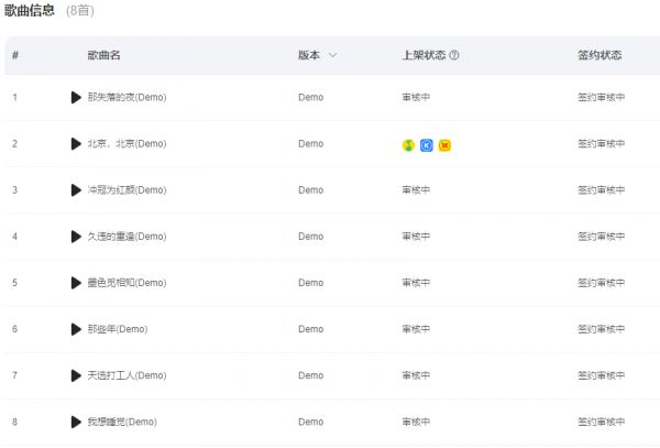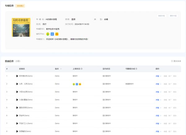我又去入驻了一下腾讯音乐人平台,把这8首歌打包一起,发行了一张Demo专辑。