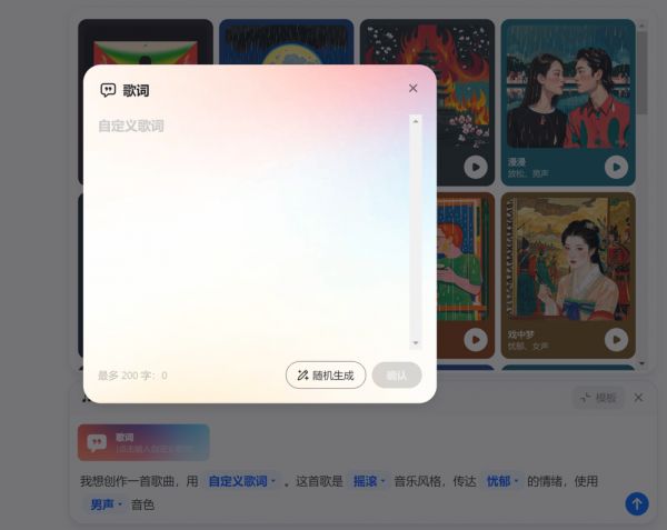 所以,咱们把生成的那一大段歌词,用自定义歌词功能,扔到豆包的音乐生成里。
