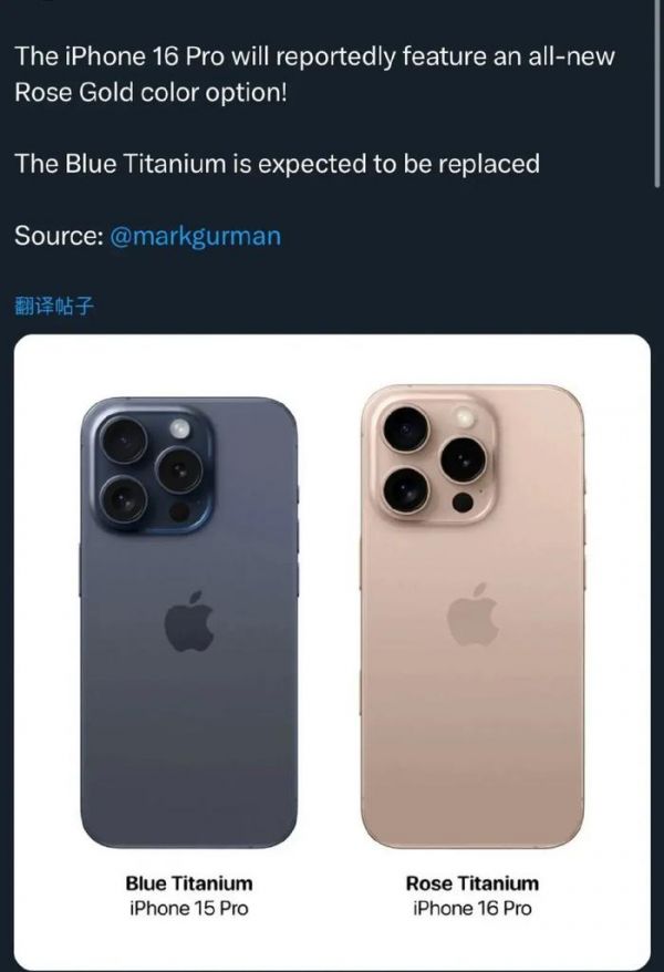 在上个月的爆料中,有消息称iPhone 16 Pro系列的颜色选项,将不仅限于经典的黑色、白色和灰色,还将推出一款全新的“玫瑰”配色,代号“Rose”。