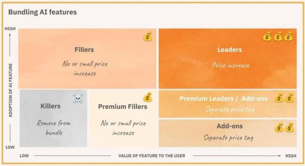 如果选择将AI功能整合到现有套餐中,关键是要仔细考虑它们在各套餐中的分配。评估各种用例和不同客户的支付意愿,将功能分散到不同价位的各种套餐中,而不是单一套餐中。这种战略性布局确保了功能与客户需求有效对接,同时最大化了收入潜力。