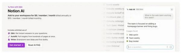 Notion、Microsoft 和 Airtable 等公司采用这种方法,将 AI 产品作为附加功能。例如,Notion 收取10美元来启用其Notion AI功能。