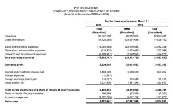 ②(杀疯了!一季度狂赚300亿,拼多多怎么做到的? 新浪财经2024-05-26 来源:牲产队2024)