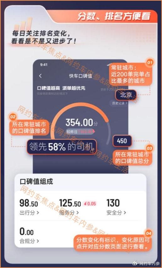 也有师傅会说,我是出来赚钱的,又不是出来跑分的。这样的话,发发牢骚可以,抖抖机灵可以。如果真的将网约车当成职业,靠这个养家糊口,还真的要多关注平台政策,紧跟平台的思路。