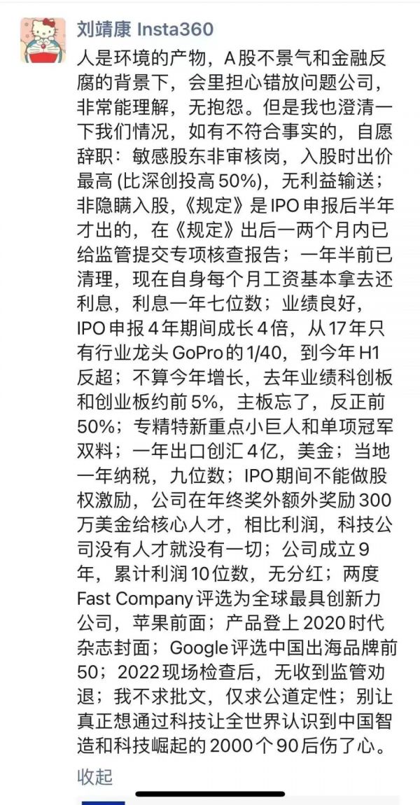 不久之前,刘靖康曾在朋友圈发表长文,就公司IPO过程中的一些问题进行了表态,引发了市场关注。