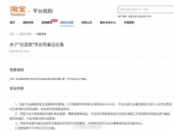 大动作来了!淘宝着手整治不合理仅退款现象