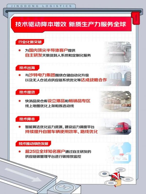 上半年,京东物流业绩持续高质量增长,总收入达863亿元,同比增长11%,其中来自外部客户的收入为599亿元,同比增长11.2%,占总收入比例约7成。经调整后净利润为31.2亿元,同比增长2631.2%,盈利水平再创新高。截至今年6月,京东物流已连续5个季度盈利且盈利水平稳健提升,这也意味着京东物流在推进网络、产品、技术等不断升级中,不断实现成本、效率和体验的优化,推动规模经济进一步释放。一体化供应链客户的收入达到418亿元,来自外部一体化供应链客户的收入达154亿元,保持稳健的增长趋势。通过不断提升产品和服务竞争力、激发一线销售活力等发展策略,京东物流外部一体化供应链客户数进一步增长至超6.4万名,单客户平均收入达23.9万元。来自其他客户的收入达到人民币445亿元,同比增长14.5%,携手德邦持续加强基础网络能力的建设,不断提升的快递、快运等标准化产品始终代表着高质量、可靠、便捷等行业最高标准。京东快递持续提升核心城市流向的次晨达订单占比,不断缩短履约时效。截至2024年6月30日,京东物流已在全球拥有近100个保税仓库、直邮仓库和海外仓库,总管理面积接近100万平方米,海外供应链网络覆盖全球主要国家和地区。国际快递欧美主要国家均可覆盖,最快可实现3日即送达。始终把技术创新放在首要位置,致力于创新技术服务与多元场景的有机结合。上半年,京东物流首次为国内半导体龙头企业提供定制化服务,成为又一行业突破;京东物流还与沙特电力集团达成战略合作,为其数十个仓库进行自动化升级改造;此外超25位全球知名客户使用京东物流自研供应链碳管理平台进行碳排放数据监控。京东物流不断通过切实的投入来保障员工干得稳、干得久。目前京东物流已拥有一线运营人员超43万人,同比增长4.6%,一线员工薪酬福利支出299亿元,同比增长14.9%。