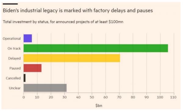 不光是半导体,清洁能源技术项目在美国进展也不顺利。