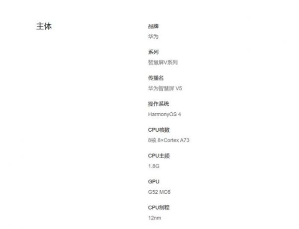 尽管是产品的主要卖点之一,但华为智慧屏 V5 98 英寸搭载的鸿鹄 900 旗舰芯片在产品页之中却没有太多存在感,这款处理器拥有 8 核心配置,由 12nm 制程工艺打造,核心全部为 A73 大核,主频可以达到 1.8G(此处单位标注比较奇特,可能为 GHz)。依靠鸿鹄 900 旗舰芯片,它能支持 8K 视频解码,整体性能实力进步还是比较显著的。