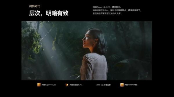 作为 V5 系列的成员,华为智慧屏 V5 98 英寸依旧是一款 Mini LED 电视,尽管没有说明背光分区的数量,但也有明晰控光 Pro 技术,最高亮度甚至来到了 2000nits。