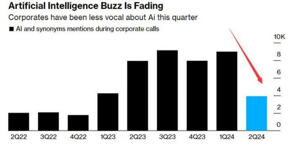 数据显示,二季度财报电话会议上,公司提及人工智能及相关词汇的数量较第一季度显著下滑。