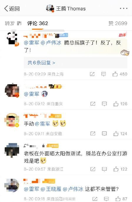 网友向雷军举报王腾摸鱼:上班第一件事就“猿神启动”