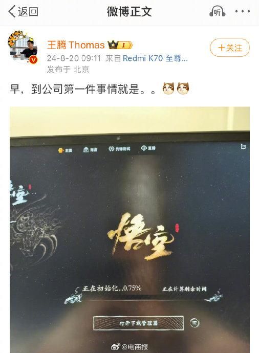 #网友向雷军举报王腾上班摸鱼# 网友向雷军举报王腾摸鱼:上班第一件事就“猿神启动”。[doge]#黑神话悟空#