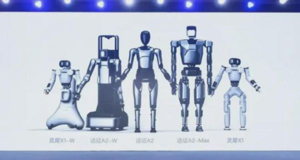 上周日,智元机器人发布 5 款产品:可以行走、抓物体、语音交互的远征 A2,绑在可移动架子上的上半身人形机器人远征 A2-W,能够搬起 80 斤重物的 A2-Max,只有 1.3 米高的简易人形机器人灵犀 X1,以及只有上半身、用来采集数据的灵犀 X1-W。