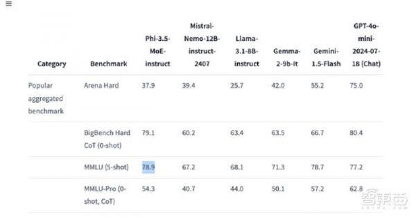 ▲Phi-3.5-MoE-instruct对Python、Java等编程语言的掌握显著好于其它同类模型(图源:微软)这一模型还在5个示例的MMLU测试中击败了GPT-4o mini。这一基准测试涵盖了科技、工程、数学、人文、社科领域的问题。