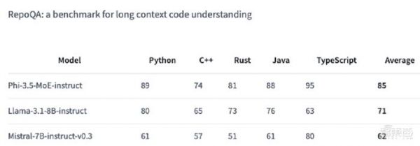这一模型系列中最小的Phi-3.5-mini-instruct在长上下文代码理解任务以明显优势击败Llama-3.1-8B-instruct和Mistral-7B-instruct,而其参数规模还不到Llama-3.1-8B-instruct的一半。