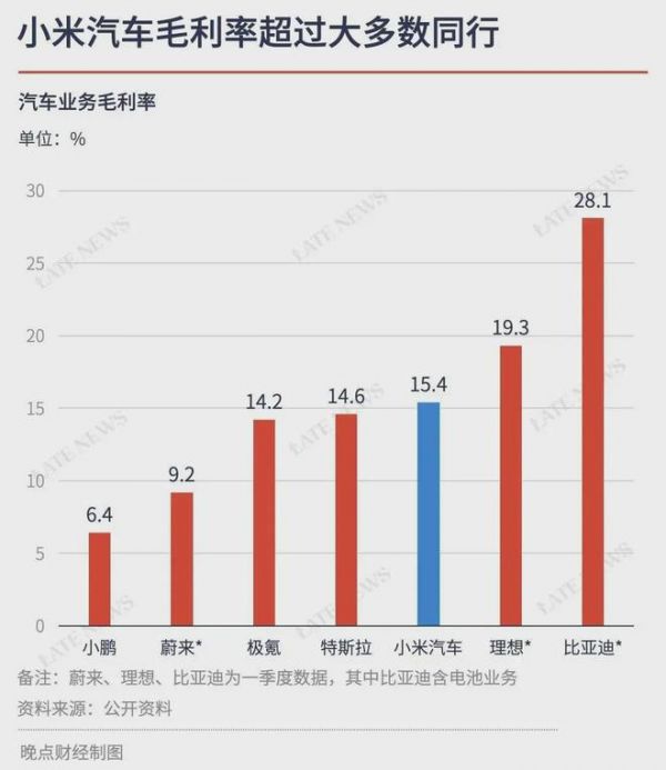 小米造车毛利率超过特斯拉
