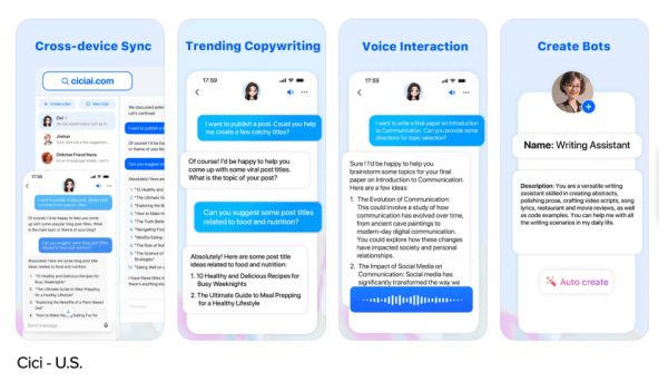 与豆包并列的,还有照片和视频编辑器 Hypic(#19)以及助手 Cici(#34),它们同样出自字节跳动,共计占据了两个榜单中的六个位置。这些应用面向不同的地理市场;在移动端,Cici 是豆包的英文版本。