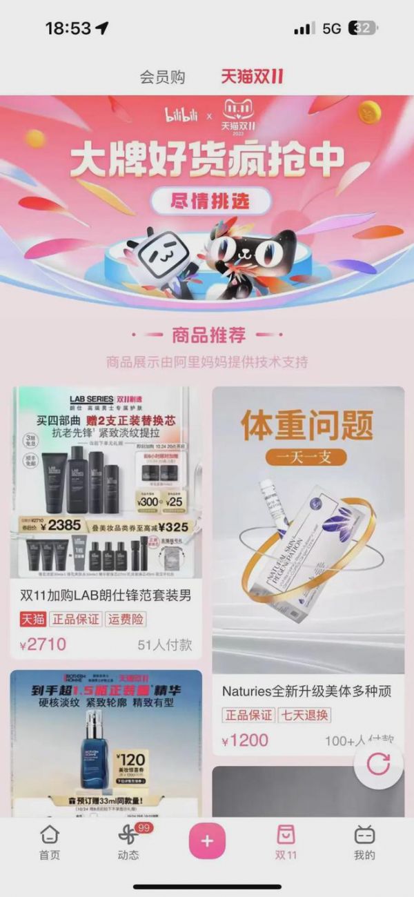 B 站不只是挣了一笔广告费,还能在自营电商平台 “会员购” 进展缓慢时,培养用户消费习惯。除了常规的开屏 “摇一摇” 广告、商品链接以外,B 站一度在应用内为天猫开辟一块飞地,承载 “猜你喜欢” 商品流。