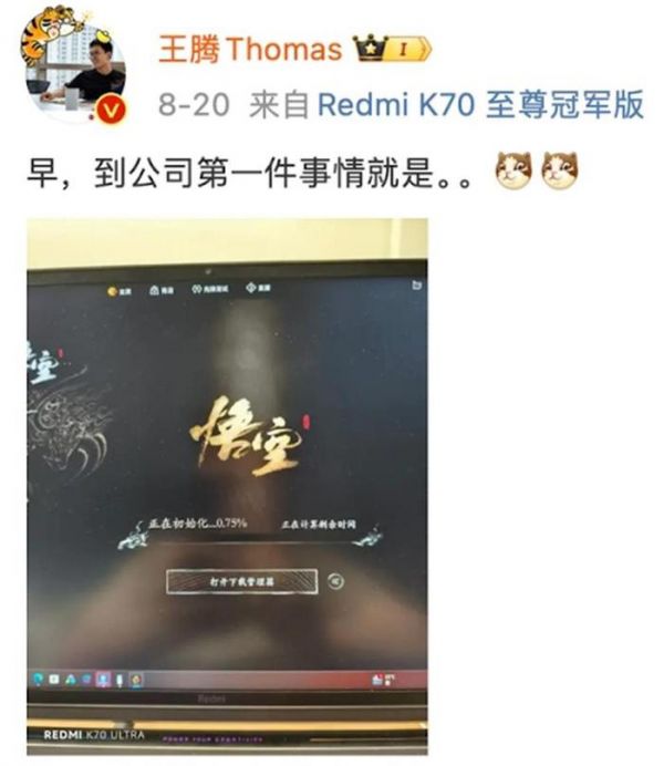 网友向雷军举报王腾摸鱼:上班第一件事就“猿神启动”