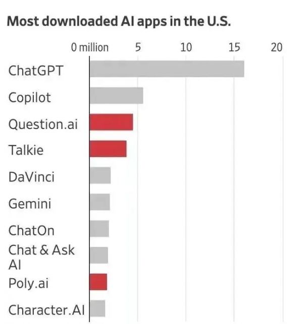除了备受瞩目的TikTok、Shein、Temu之外,在海外短剧市场,众所周知ReelShort也是中文在线的杰作。中国的出海应用在AI领域,也牢牢占据了美国用户的心智。