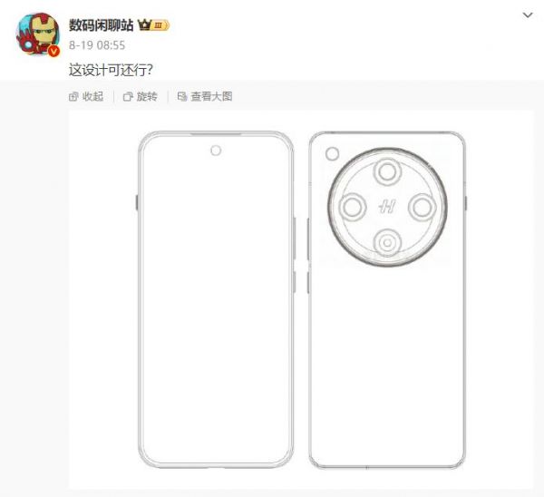 博主@数码闲聊站 此前还公布了一张OPPO Find X8 Pro的线稿设计图。