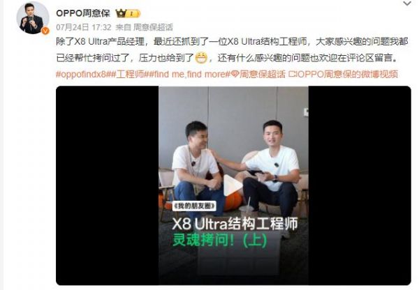 此外,OPPO Find 系列产品负责人周意保近日发布的视频展示了与OPPO Find X8 Ultra结构工程师的谈话内容,透露了OPPO Find X8 Ultra的部分细节信息。