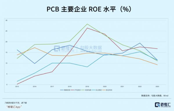 PCB行业在制造工艺上没有类似晶圆代工那么强的规模效应和技术壁垒,而且能直接影响下游的应用发展。事实上,回顾几家做得好的企业,其ROE水平在过去几年里波动很明显,但刨除固有的周期性影响,中枢水平大概也就13%~15%的水平。
