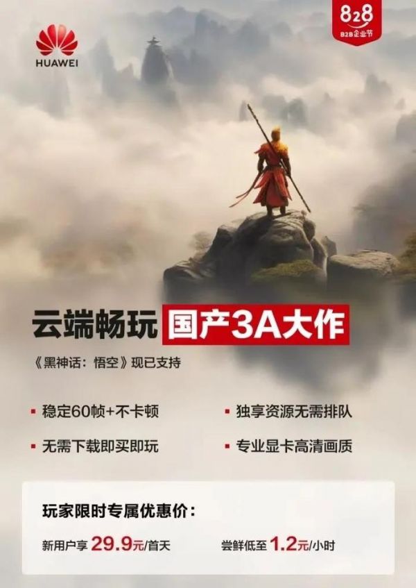 它今天就上线了《黑神话:悟空》云工作站,新用户29.9元/天,就能流畅高画质玩上“天命人”。