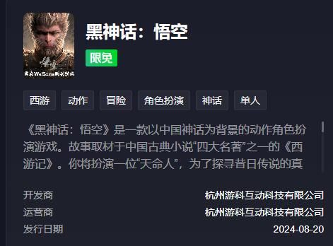 最近《黑神话:悟空》的热度依旧火爆。