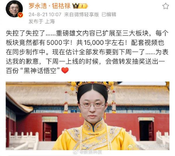 罗永浩发自己熹贵妃回宫照罗永浩称杀回社交媒体界