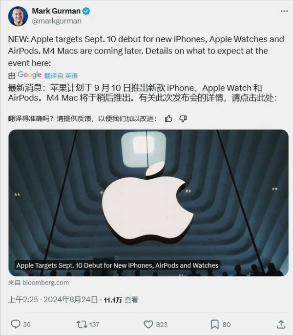 近日,彭博社记者马克·古尔曼在最新发文中印证了这个推算时间。他还表示,除了iPhone 16以外,最新款的Watch和AirPods也将一同亮相。