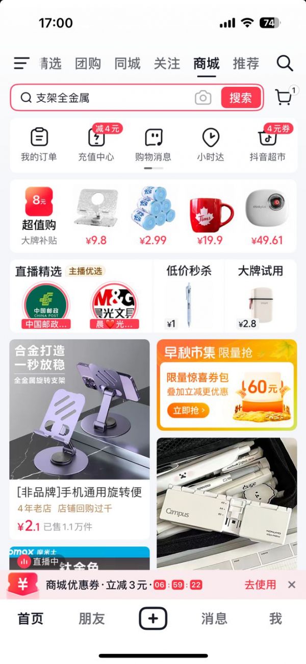 “商城” 为代表的货架场景能部分抵消抖音电商在价格力方面的劣势——它跳过达人与主播的环节,直接呈现商品,降低流通成本;用户搜索后呈现的信息流页面也便于比价。