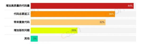 不过,尽管 AI 工具可以生成高质量的代码,但 36% 的开发者反馈,在某些情况下,生成的代码仍需进行返工,由人类工程师来改 Bug,还有 32% 的开发者指出 AI 生成的代码可能导致重复。