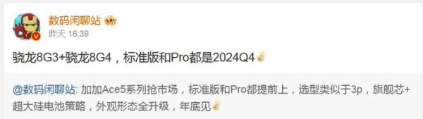 据之前该博主透露,一加 Ace 5标准版机型将搭载骁龙8Gen3处理器,Pro版将搭载全新骁龙8Gen4处理器。