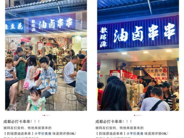歆瑞源油卤串串店也尤为火爆,常被顾客围得水泄不通,店内座无虚席。