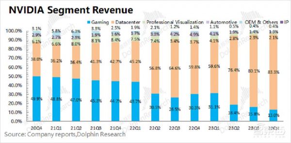 ▲英伟达分业务线营收占比,数据中心业务占比提升迅速(图源:Dolphin Research)