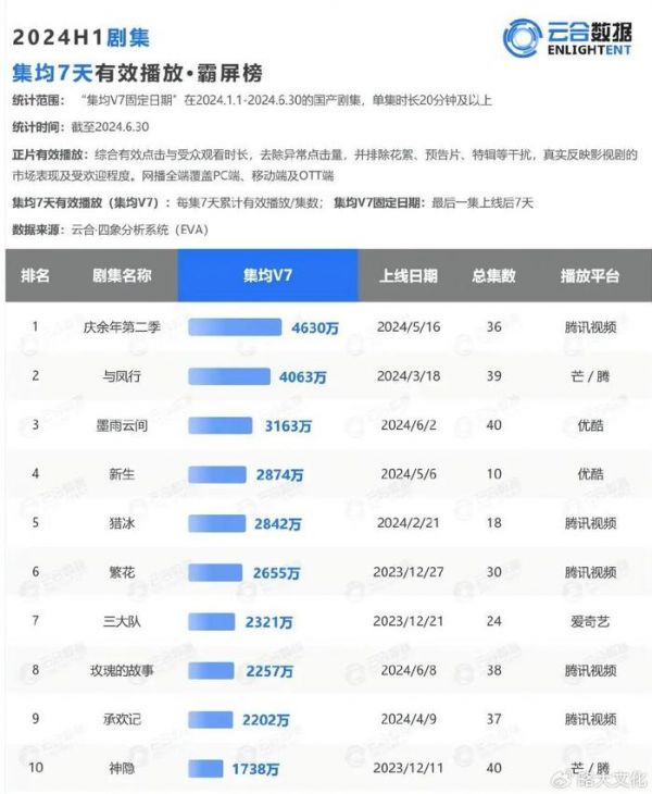 爱奇艺二季度财报出现了明显的净利润下滑,其上半年多款剧集没有达到预期结果。与此同时,腾讯视频却涌现了四部爆款,优酷仅一个白夜剧场,就连出了《边水往事》《微暗之火》《新生》三部口碑好剧。今年上半年,根据酷云《2024H1剧集全端播放量报告》,优酷剧集播放量升至行业第二。
