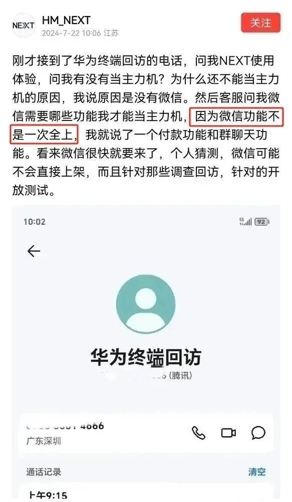 在等待期间,上个月有用户接到华为终端的回访电话,通话中对方透露,“微信功能不是一次全上”。这引发了外界对微信鸿蒙版的猜测,不少网友觉得,初期的微信鸿蒙版或是个清爽版,只包含一些核心的基础功能。