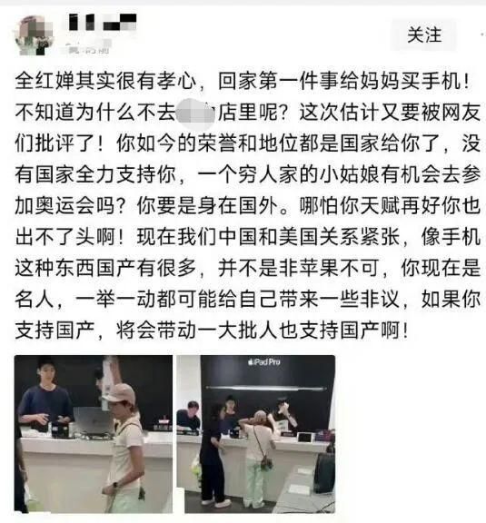 所以,有些人觉得正是这层身份,不允许全红婵购买苹果手机。